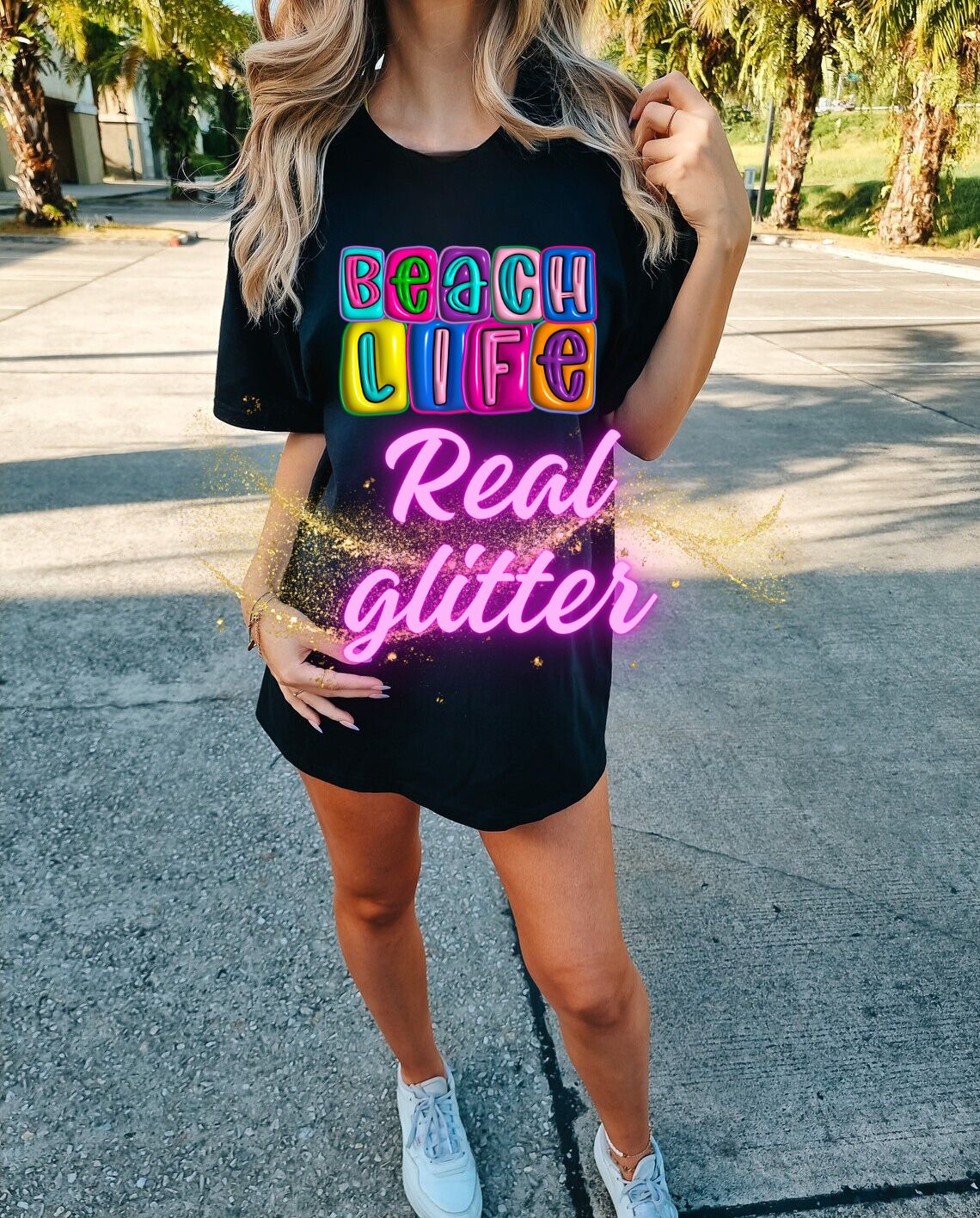 BEACH LIFE GLITTER CLEAR FILM SCREEN PRINT TRANSFER