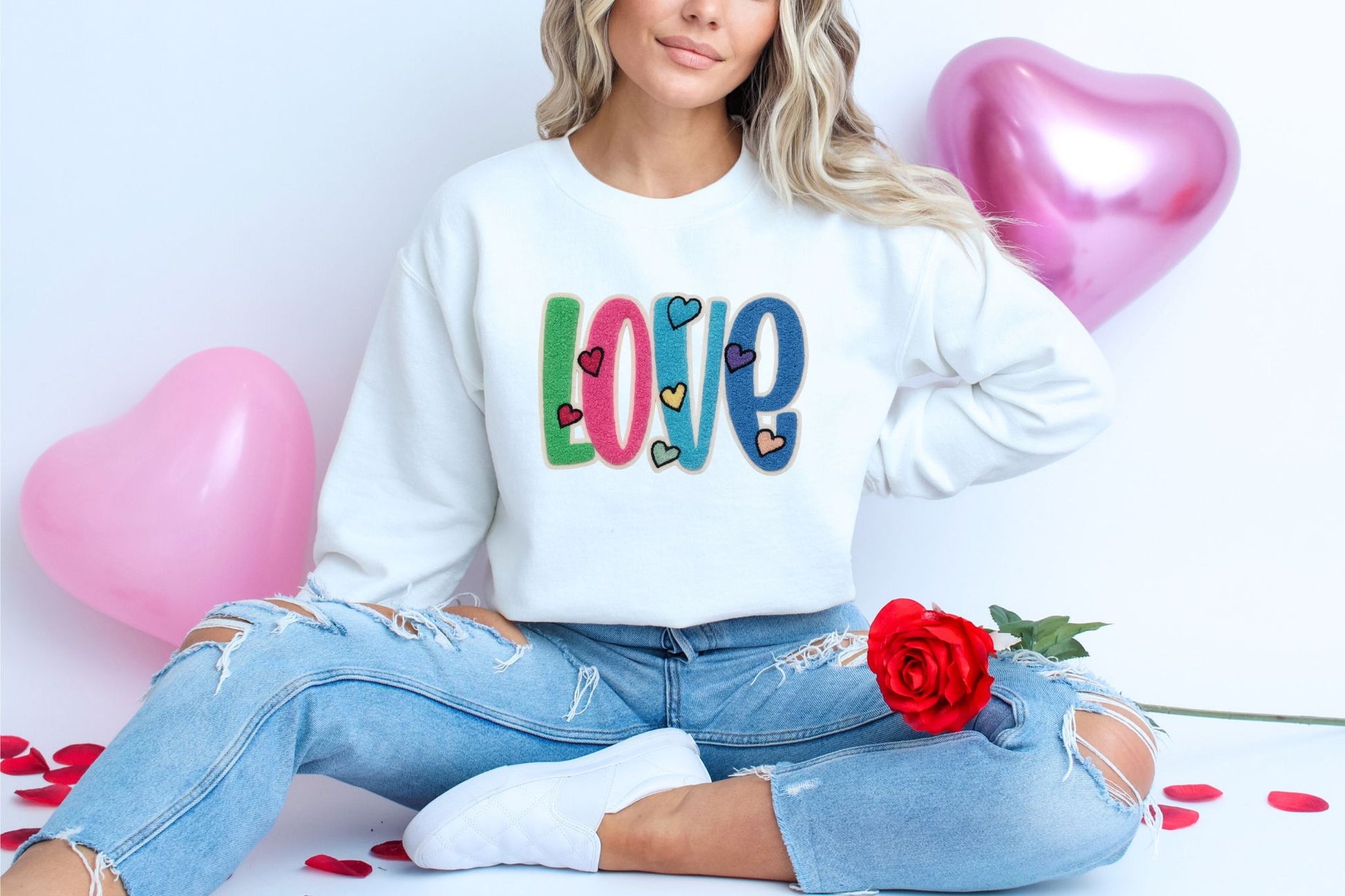 RTS*LOVE FAUX CHENNILE* CLEAR FILM SCREEN PRINT TRANSFER WITH GLITTER