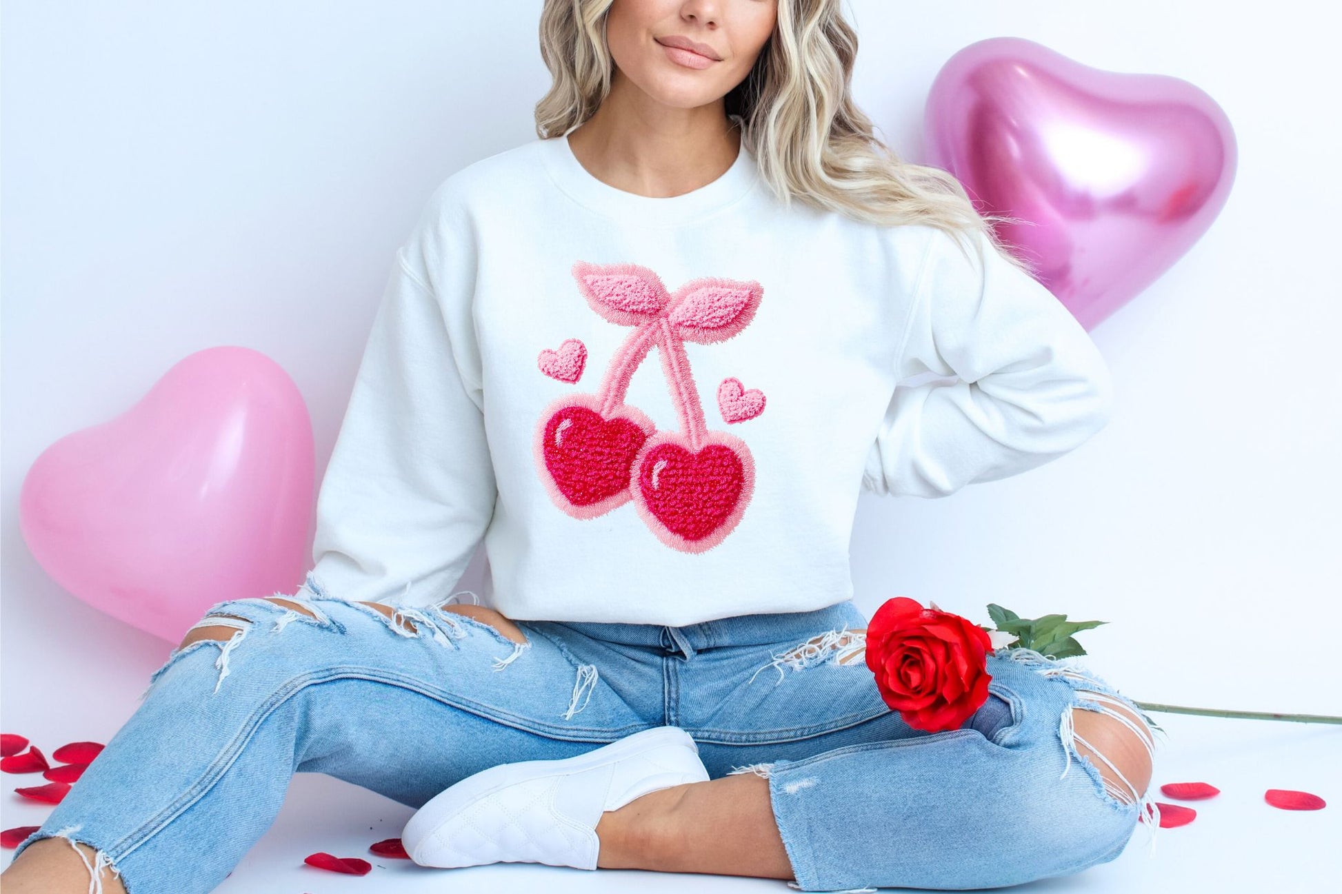 RTS*YARN CHERRIES* CLEAR FILM SCREEN PRINT TRANSFER WITH GLITTER