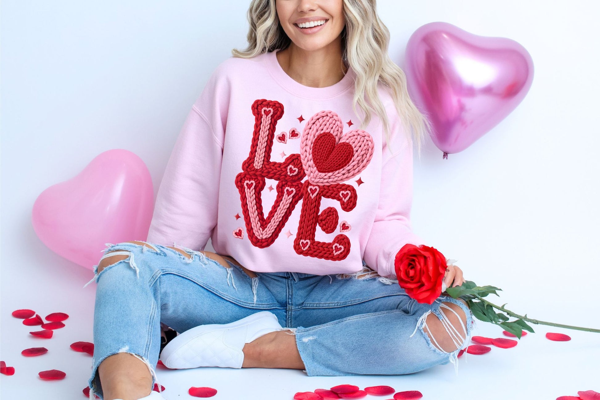 PRE-ORDER**FAUX YARN CROCHET LO-VE ** CLEAR FILM SCREEN PRINT TRANSFER WITH GLITTER