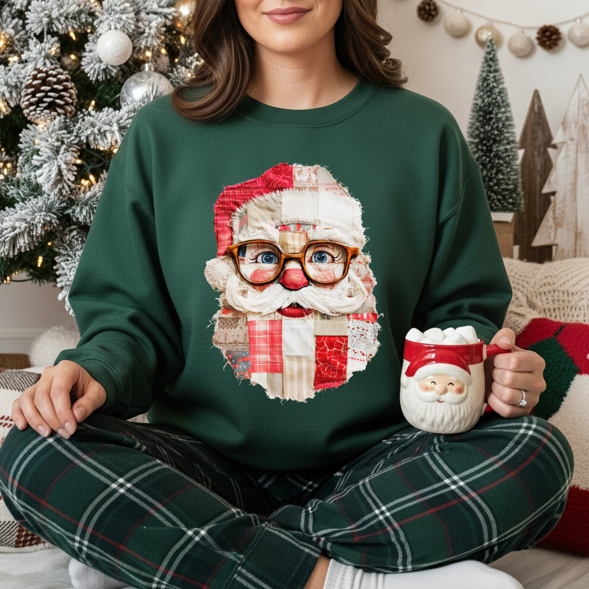 RTS* PATCH WORK SANTA * GLITTER CLEAR FILM SCREEN PRINT TRANSFER