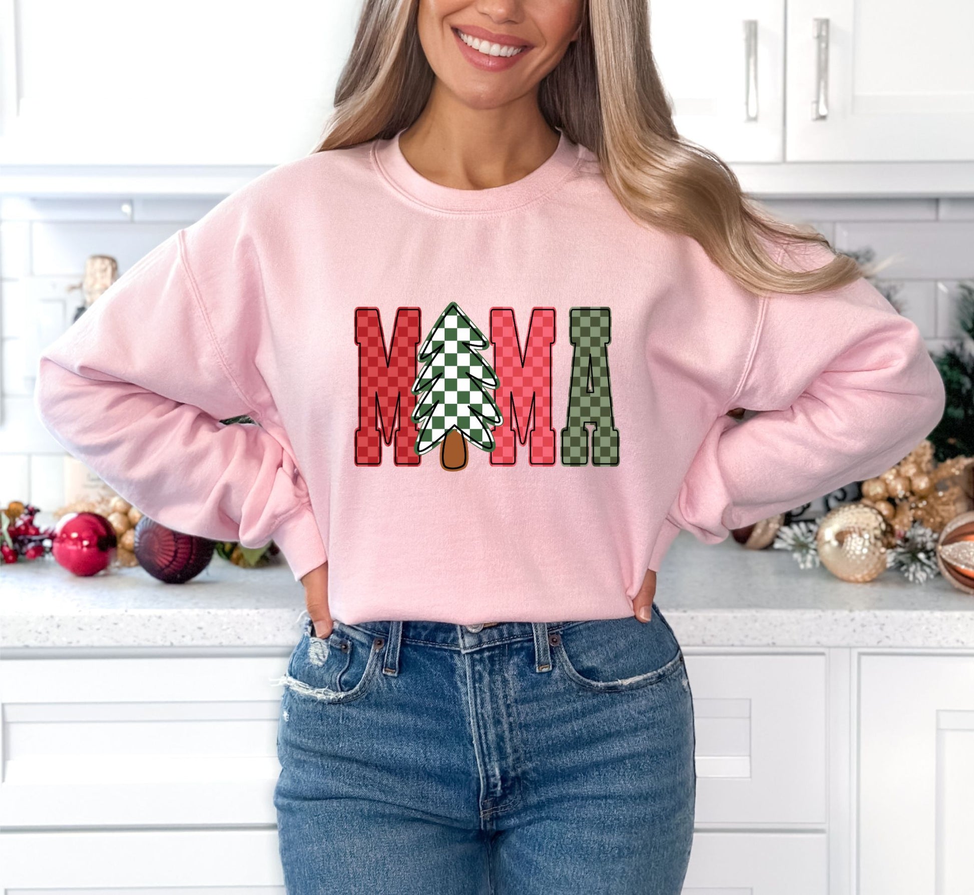 RTS *X-MAS MAMA WITH CHECKERS *GLITTER CLEAR FILM SCREEN PRINT TRANSFER
