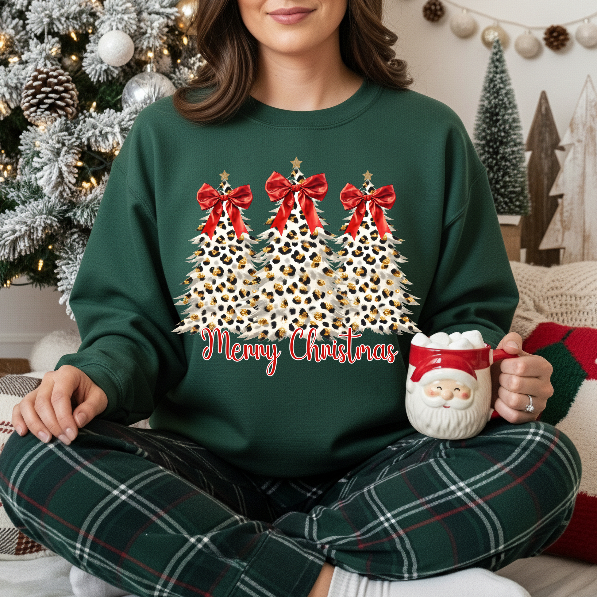 RTS* LEOPARD CHRISTMAS TREES * GLITTER CLEAR FILM SCREEN PRINT TRANSFER