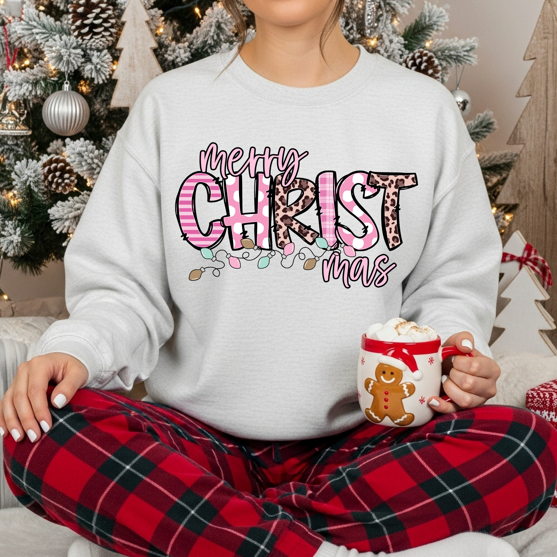 RTS*MERRY CHRISTMAS LEPARD POLKA DOTS* GLITTER CLEAR FILM SCREENPRINT TRANSFER