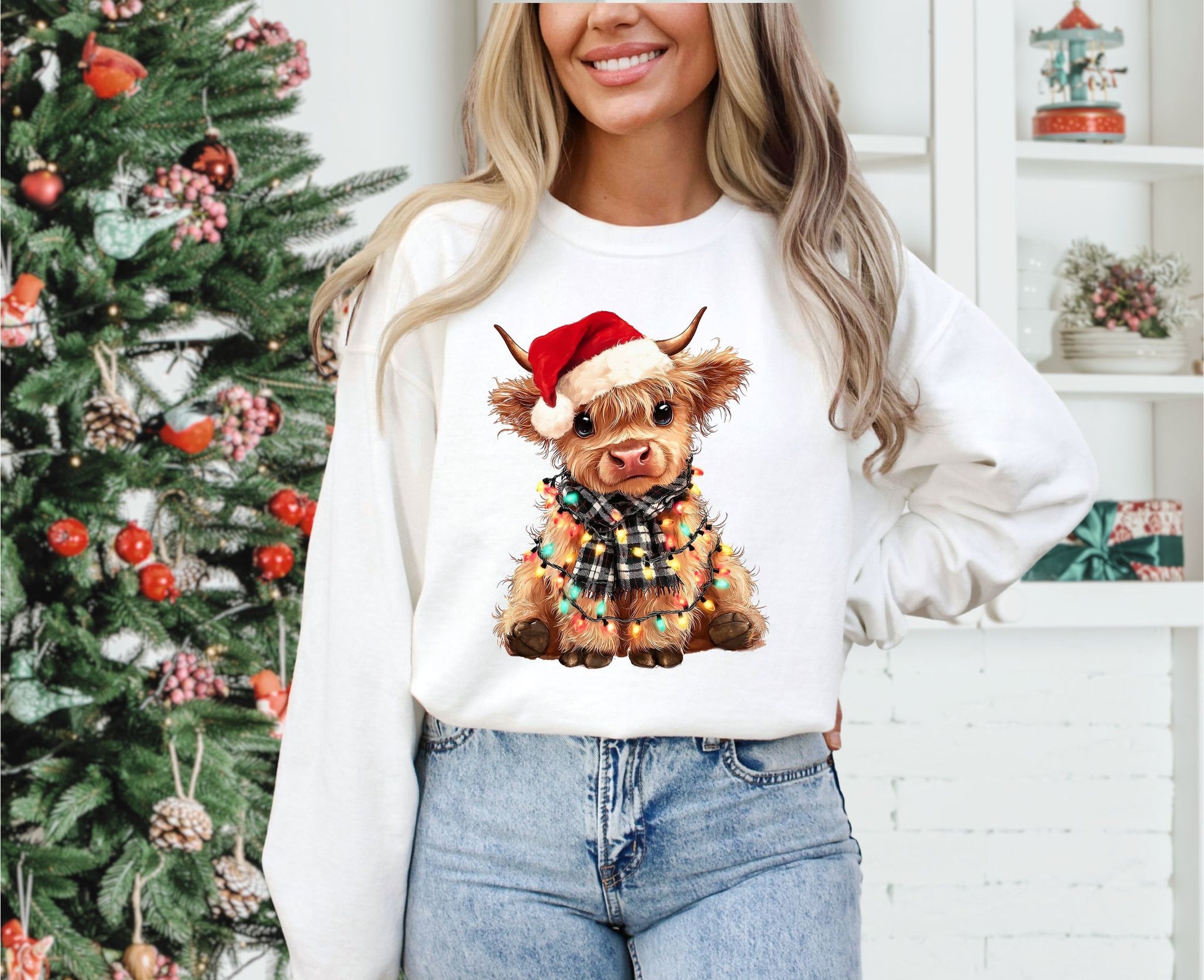 RTS *CHRISTMAS COW SANTA HAT *GLITTER CLEAR FILM SCREEN PRINT TRANSFER