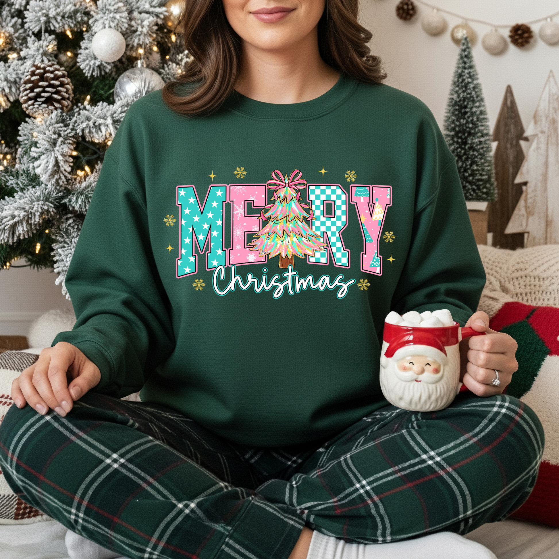 RTS* PASTEL MERRY CHRISTMAS* * GLITTER CLEAR FILM SCREENPRINT TRANSFER