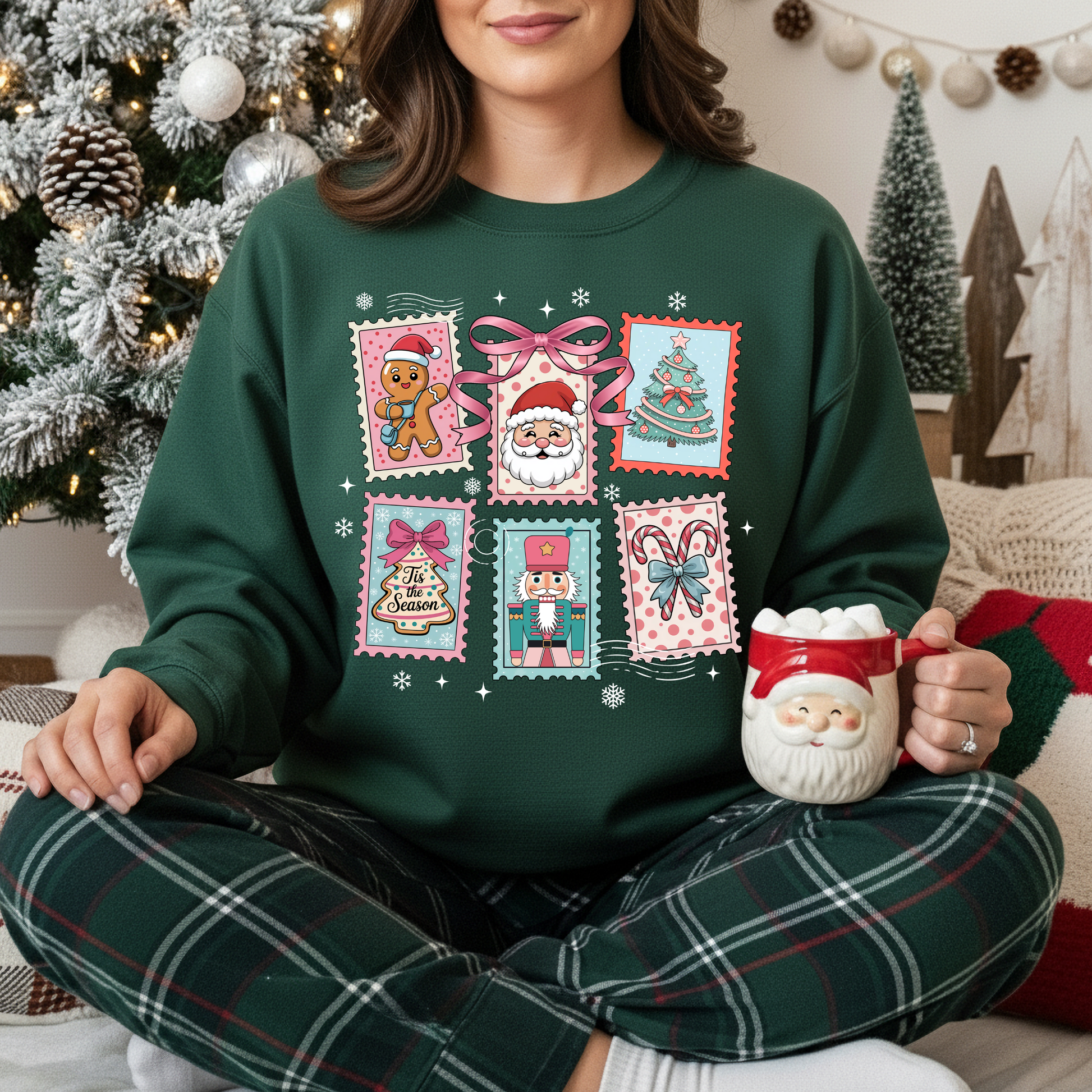 PRE -ORDER *CHRISTMAS STAMPS * GLITTER CLEAR FILM SCREEN PRINT TRANSFER